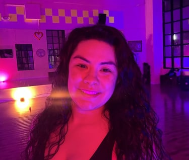 Meet Raquel, our go-to staff member and check-in pro. She’s a mom of two wild ones and Vince's sister, with a personality that packs a punch once you get to know her. What started as a quiet entrance into the dance scene has turned into a full-on front-row presence. She may be a little shy at first, but trust—this firecracker comes to life when she’s in her element!